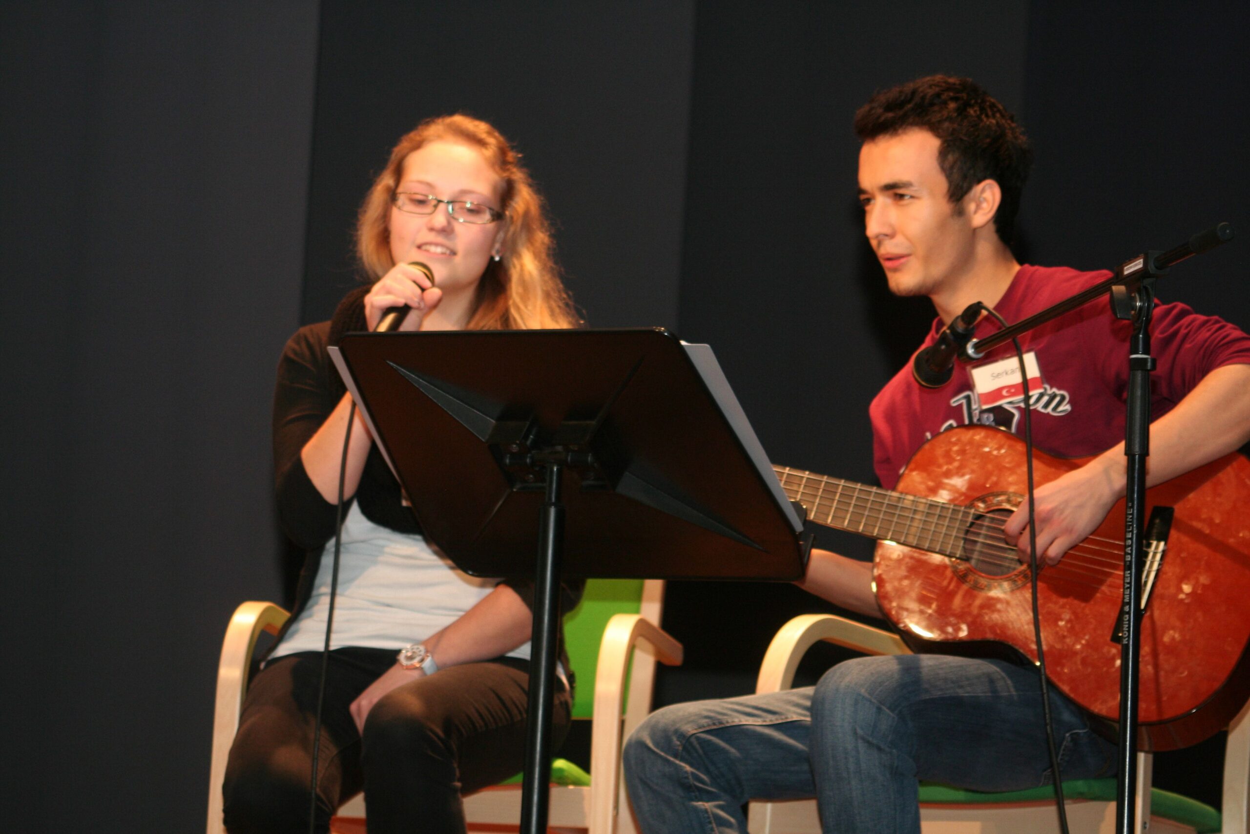 Saalitäis õpilasi kuulab hiirvaikselt, kuidas Türgi poiss Serkan laulab kitarri saatel puhtas eesti keeles Ott Leplandi laulu „Kuula“.