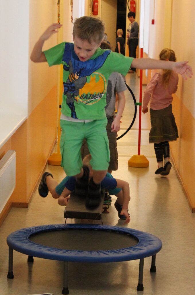Sportlik päev algas soojendusvõimlemisega, kus eeskuju näitasid Tallinna Ülikooli Pedagoogilise Seminari üliõpilased. Ühiselt tõsteti suures ringis pöidlad püsti ning tantsiti lisaks lõbusat Soome seltskonnatantsu. Lihased soojaks võimeldud ja tantsitud asuti sportima. Järgnevad teatevõistlused olid meeskondlikud ning nõudsid osavõtjatelt ennekõike osavust, kiirust ja taiplikust – kõik koolilapsele väga vajalikud omadused.