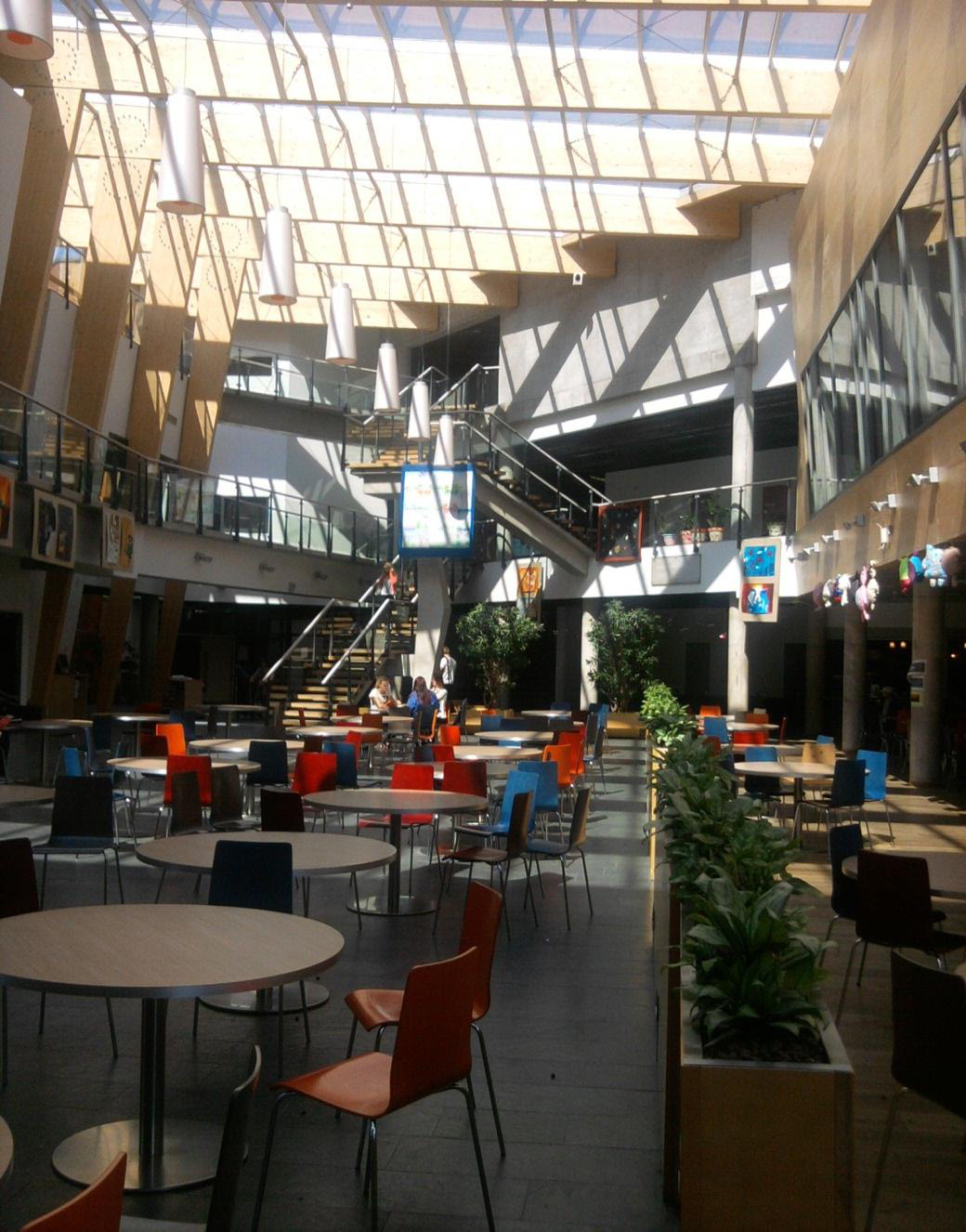 Kirkkojärve kooli keskruum (piazza). Esimesel korrusel peasissekäik, vestibüül, söögisaal, aula/vaatesaal. Keskruum läbib kahte korrust ning on ühendatud raamatukoguga.