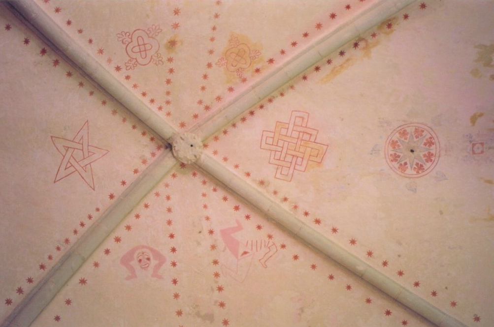 Roos seostub samuti Venuse viieharulise tähega, mida näeme lausa aukohal Karja kiriku kooriruumi laes, s.o sümboolsel taevalael. Viisnurkne täht on ilu ja täiuslikkuse sümbol (kui kõigiti kuldlõikeline märk), see väljendab jumalikku harmooniat, seostudes iidsetest aegadest emajumala ja püha naiselikkusega, erootika ja viljakusega – samuti kui viielehine roosiõis. Emajumalatest tähtsaimad olid Kreeka sünnijumal Demeter ning viljakuse ja taeva jumalannad Ishtar ja Isis, kes vastutasid surma ja sünni, viljakuse ja emaduse eest. Sünnijumal oli ka Iiri Brigit (‘kõrgus, väärikus, ülevus’), tema hoolitses oma maa viljakuse eest ja seisis sünnituse ajal naise kõrval, sirutades oma kaitsva käe lapse kohale.