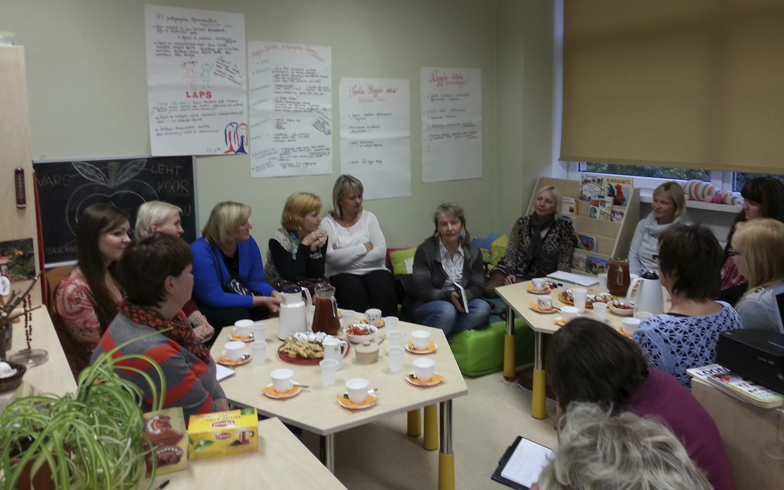 Meie esimesel kohtumisel osalesid (ja ülemisel väiksemal pildil on): Ingrid Maidra, (Lastehoid Kaheksajalg Tartus), Heldi Maidra (MTÜ TEHES juhatuse liige), Liana Helerand (Tartu lasteaed Ristikhein õpetaja), Nora Keerberg (TÜ üliõpilane), Kaire Keerberg (Tartu eralasteaed Terake õpetaja), Aulika Karo (Tartu lasteaed Ristikhein õpetaja), Katrin Helendi (Tartu eralasteaed Terake direktor), Jaana Koger (Tartu eralasteaed Terake õpetaja), Marge Kimmel (Tartu Ülikool, õpetajate täienduskoolituse- ja kutseaasta spetsialist), Evelin Sarapuu (Ülenurme lasteaed õpetaja, ELAL), Margot Fjuk (Tartu lasteaed Ristikhein direktor), Kadi Kutsar (Tartu lasteaed Ristikhein õppealajuhataja), Felika Tuul (Tartu eralasteaed Terake lapsevanem), Maarja Hõrn (Tartu lasteaed Meelespea õpetaja), Elen Olonen (TÜ üliõpilane). Pildilt puuduvad asutajaliikmed Aino Rembel (Tartu eralasteaed Terake), Irma Olonen (PAIde lasteaed Järvamaal Paides).