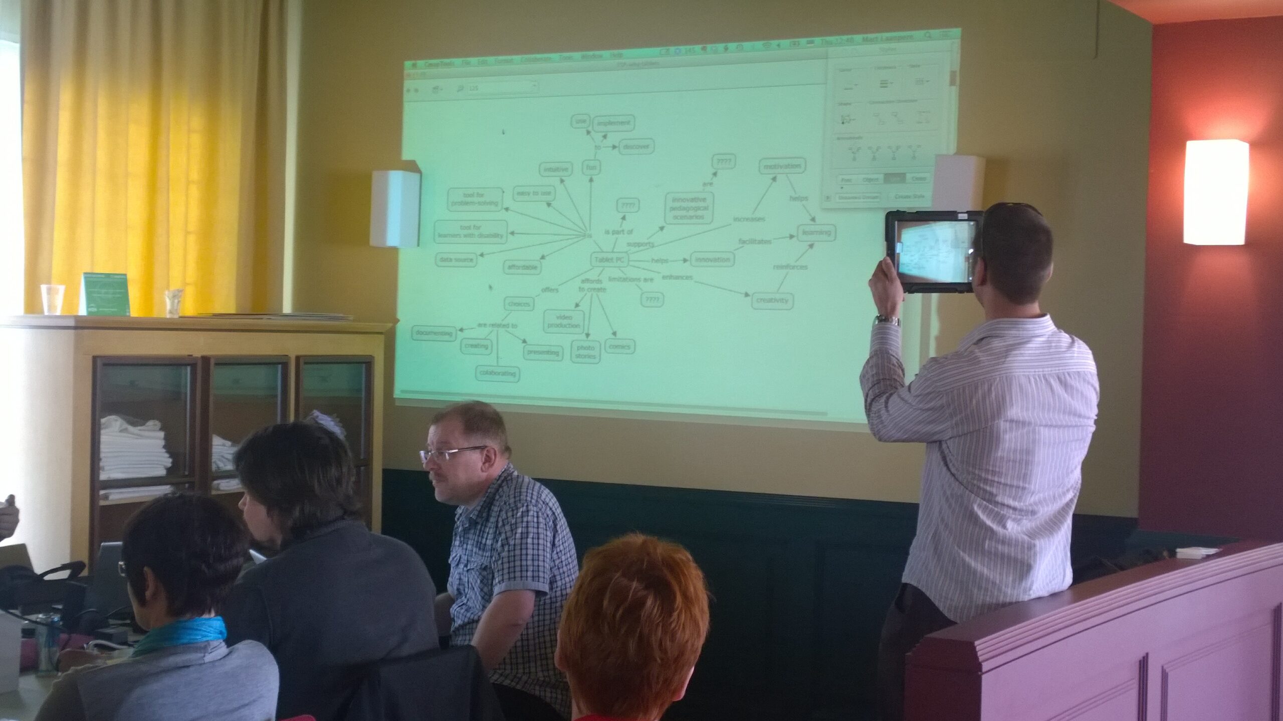 Loenguid oli sellel koolitusel vähe, suurem osa ajast kulus praktilisele tegevusele rühmatöö vormis. Kõik koolitusel osalenud õpetajad olid ise oma tahvelarvuti kaasa võtnud, lisaks Apple’i kallivõitu iPad’idele olid kasutusel ka erineva ekraanisuurusega Androidi seadmed ja Eesti koolides veel haruldased Microsoft Surface’i tahvelarvutid.