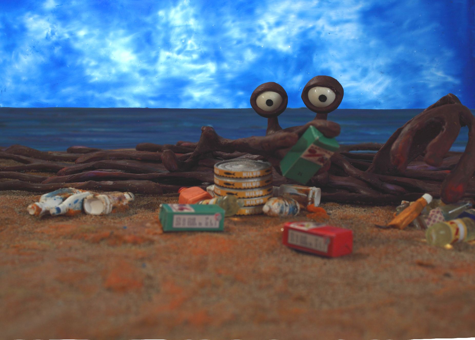 Meri selles filmis on läbivalgustatud plastiliinikiht. Ma n-ö maalisin plastiliiniga klaasi peale mere. Efekt on selline nagu pärast päikeseloojangut, kui merest kumab veel päikese viimast sära. Plastiliinil on oma eelised, aga ta nõuab animaatorilt rohkem tööd kui teised materjalid. Ta kleepub, tolm ja praht jääb kergesti külge ja nukke tuleb korduvalt puhastada. Lisaks kipub plastiliin prožektorite kuumuses sulama.