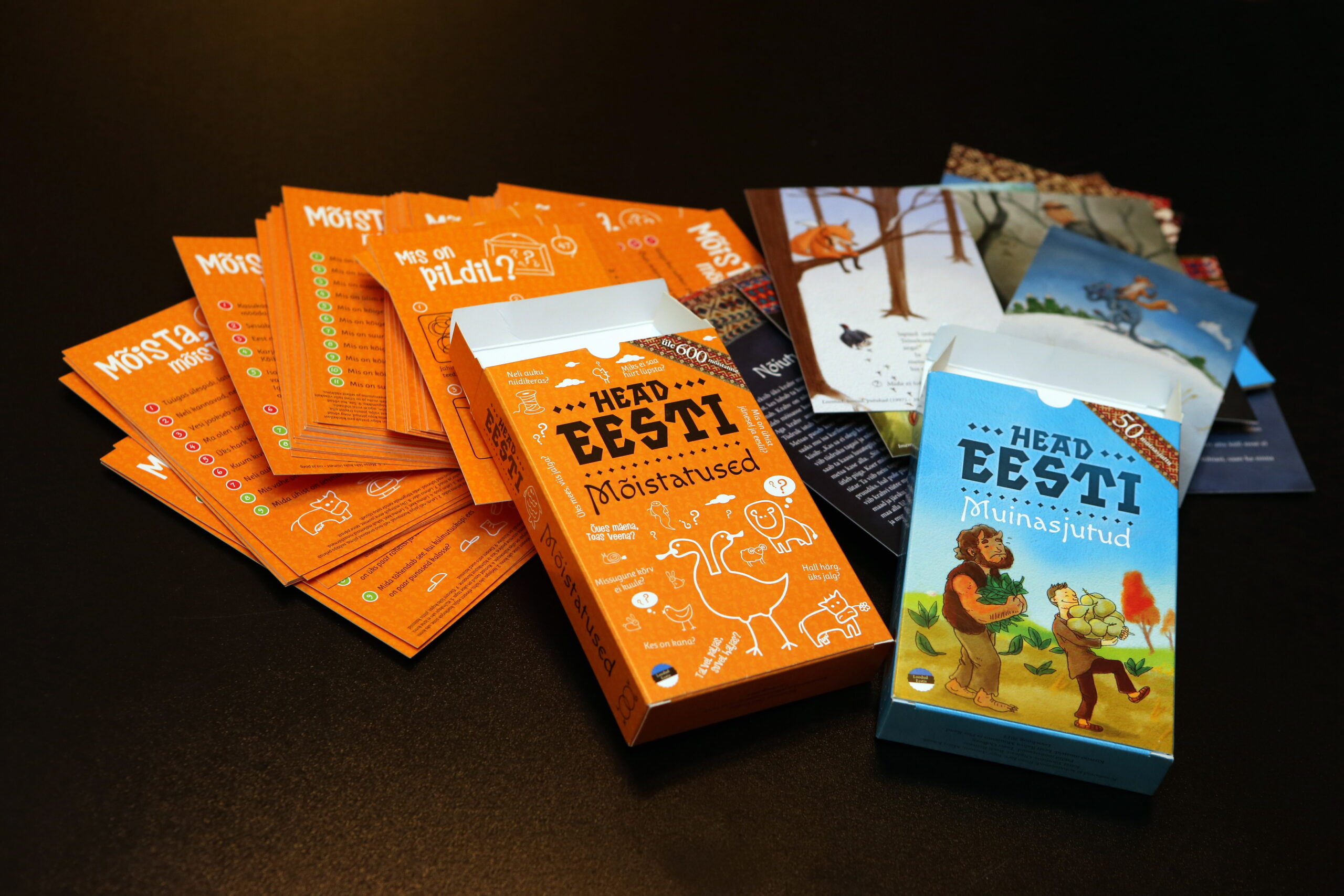 Kui „Väike taibu” kaardid saab liigitada pigem õppevahendite hulka, siis muinasjutu- ja mõistatusekaardid on midagi sellist, mis paigutuvad kuhugi raamatute, mängude ja õppematerjalide ristumiskohta. Pisut suuremas formaadis kaardipakid sisaldavad kumbki vastupidavale paksule kartongile trükitud 50 kaarti, millel vastavalt 50 muinasjuttu ja üle 600 mõistatuse. Kasutatavad nii kodus kui ka koolitunnis, reisil kui ka raamatukogus.