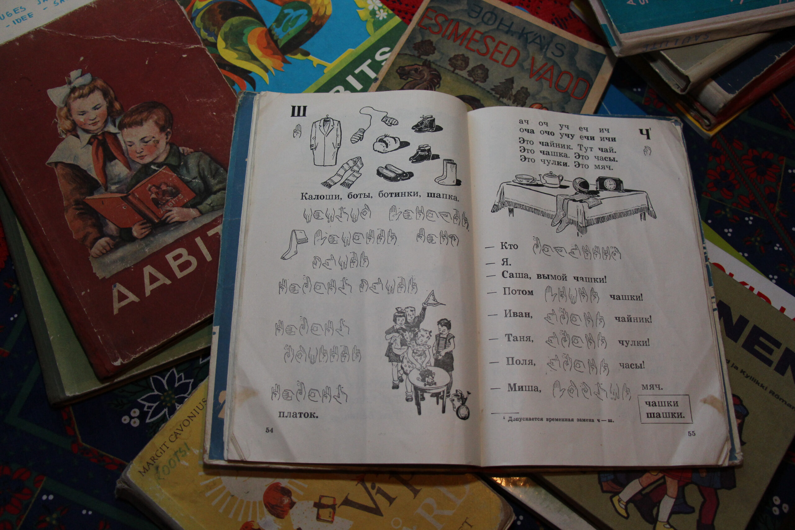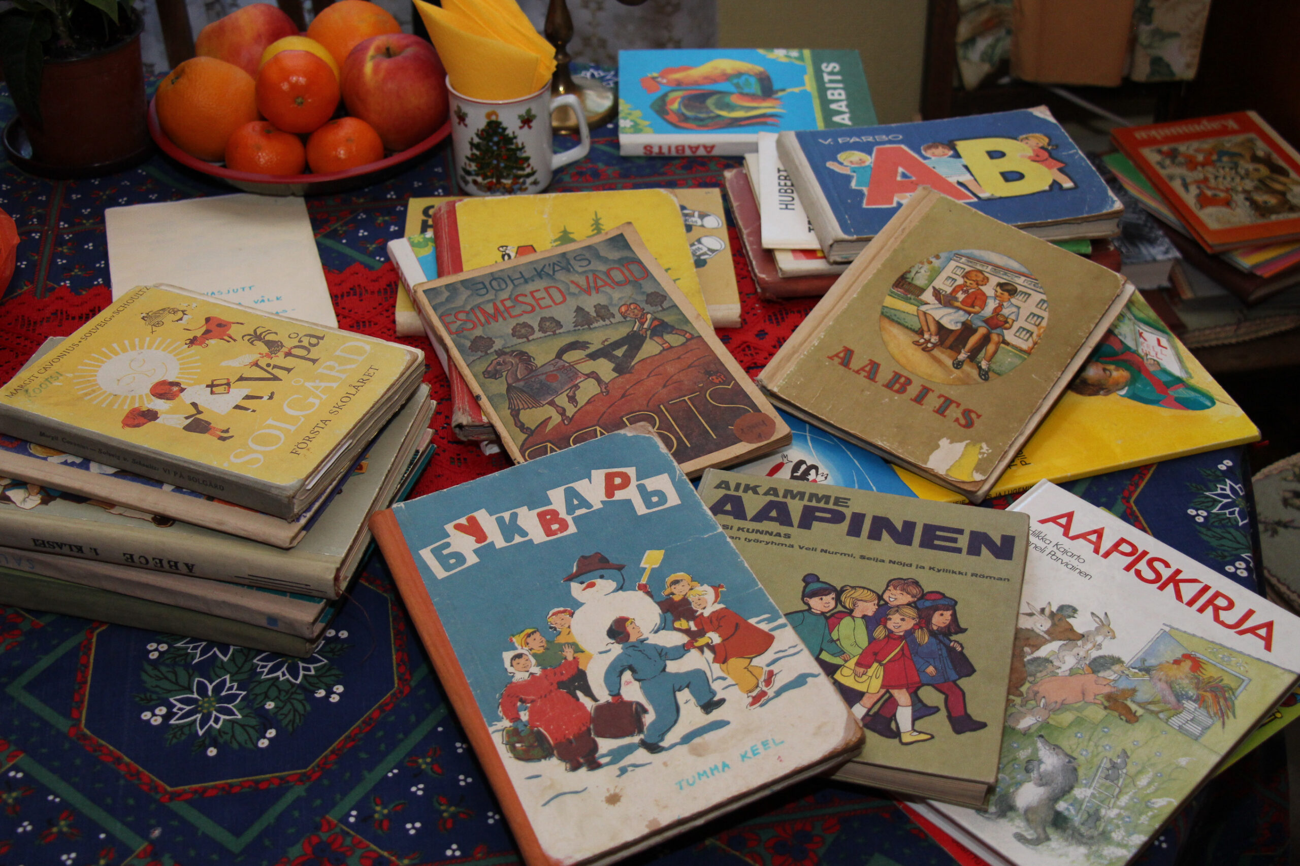 Päris eestiaegset aabitsat staažika õpetaja kogusse sattunud pole, on aga sõja ajal välja antud Eesti Vabariigi aegse kooliuuendusliikumise juhi Johannes Käisi aabits „Esimesed vaod”. Kuna teos ilmus juba Nõukogude perioodil, on seal sees ka lehekülg Lenini ja Staliniga.