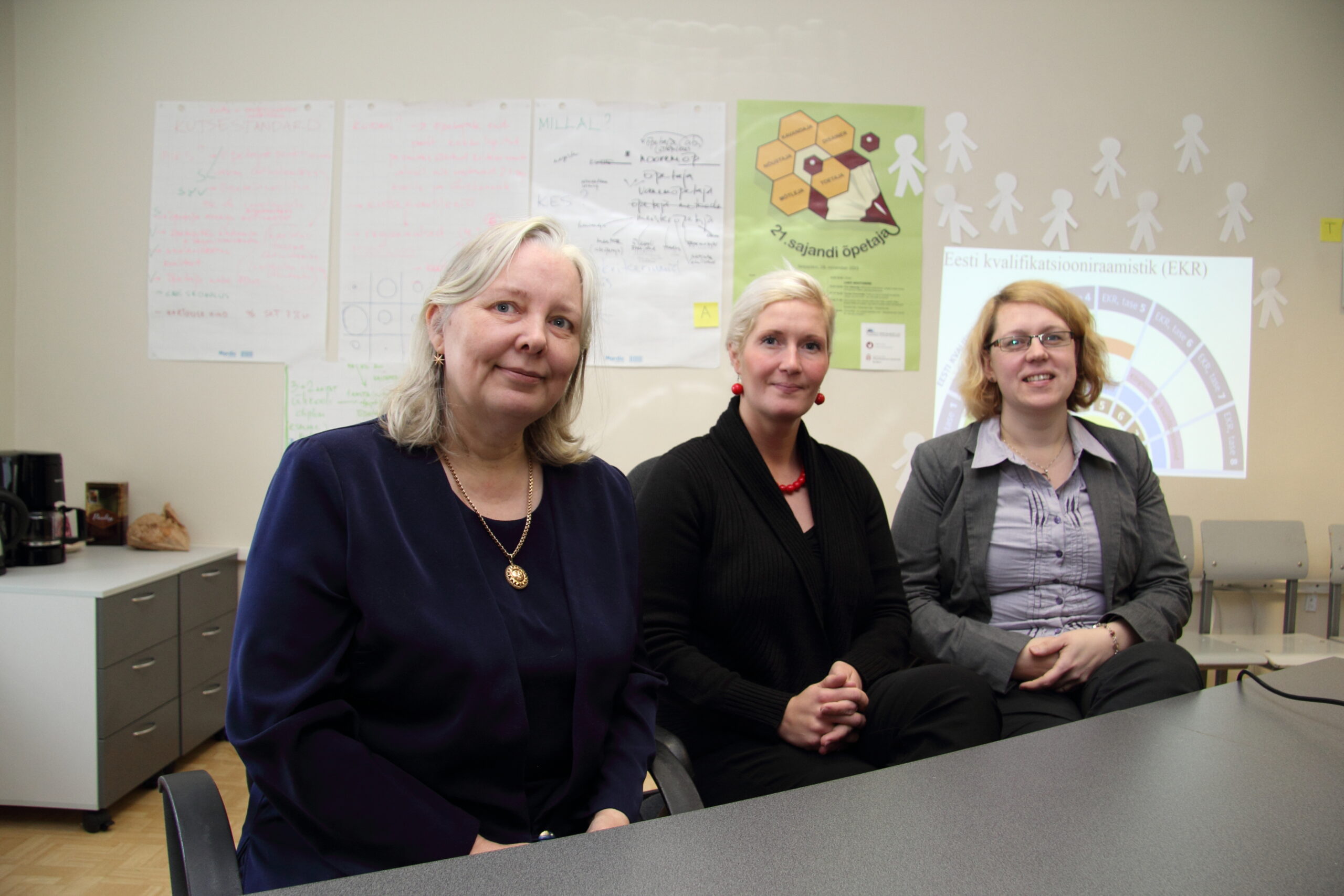 Õpetaja kutse taotlemise kevadvooru tähtaeg on 5. aprillil. Uue kutsesüsteemi eestvedajad Astrid Sildnik, Kristi Laidvee ja Margit Timakov.