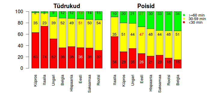 TAI teaduri Kenn Konstabeli sõnul on samalaadne olukord ka teistes uuringus osalenud maades. Aktiivseimad tüdrukud on Rootsis ja poisid Belgias, kõige vähem aktiivsed on tüdrukud Küprosel ja poisid Itaalias. Kõigis maades olid tüdrukud oluliselt vähem aktiivsed kui poisid.