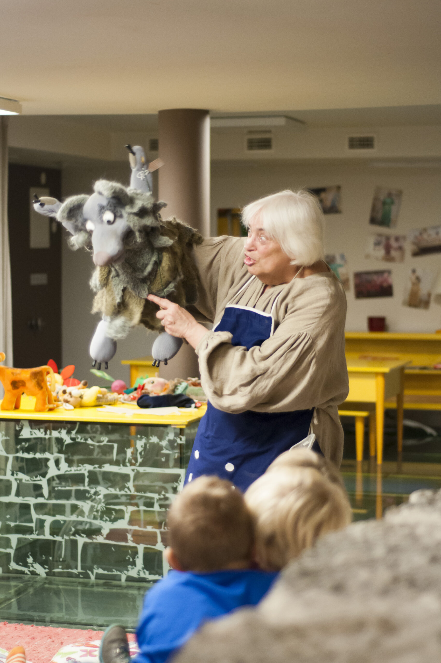 Lapsed küsivad ekskursioonil Marialt, kas siin on koht, kus nukud elavad. Siin on saal, kus tõesti nukud liiguvad. Kuidas? Üks variant on vajutada nupule ja nukk hakkab liikuma. Kui laps ütleb, et ta ei taha nupule vajutada, vaid näha, kuidas nukk päriselt elab, vastab Maria, et teine võimalus on, et näitleja annab nukule elu.