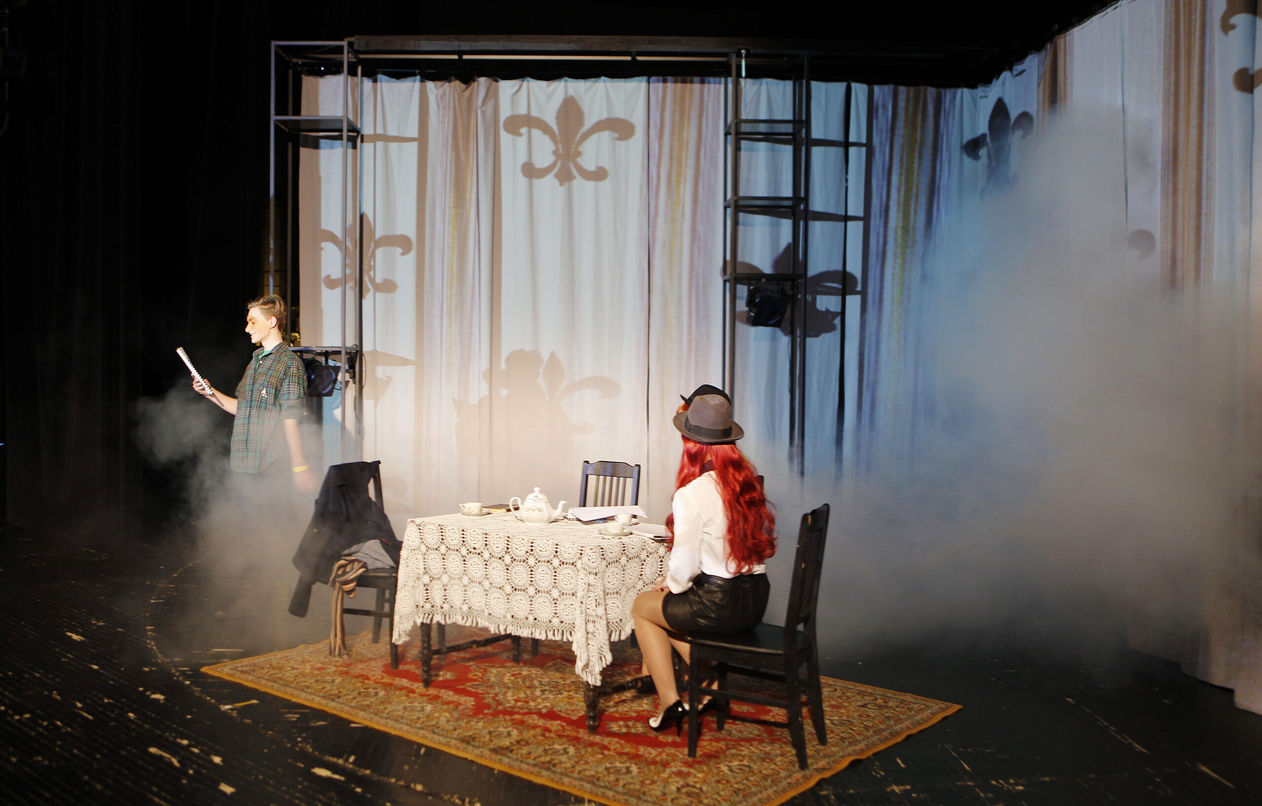 Kell üheksa hommikul kohtusime ja lugesime näitemängu läbi. Praegu (tund enne esietendust) käib kontroll­etendus, mis on tänase päeva jooksul seitsmes läbimäng.