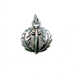 Rinnamärgil kujutatakse tammelehtedest sõõri, leegitsevat tõrvikut ja mõõka. Nendest maailmasõdade vahel kasutusel olnud riigikaitsehariduse rinnamärkide elementidest lähtuti tänapäevase märgi kujundamisel ajaloolise järjepidevuse tagamiseks.