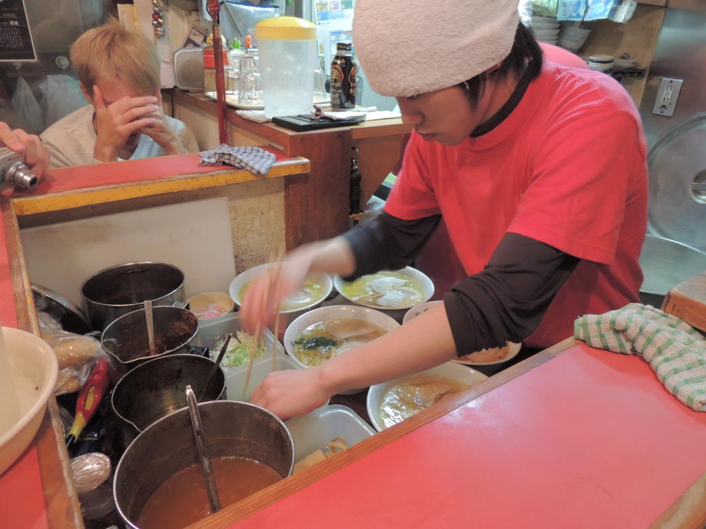 Jaapanis on kõik väike, ka köök, kus kokk valmistas süüa meie silme all 1 x 3 meetri suurusel alal. Hügieen neil igal pool aga nii oluline pole kui meil. Jaapani ramen on nii rammus, et kogu puljongit ei söödagi ära. Eestlastele õpetati, et nuudlid ja vetikas õngitsetakse pulkadega välja ja rüübatakse peale vaid veidi leent.