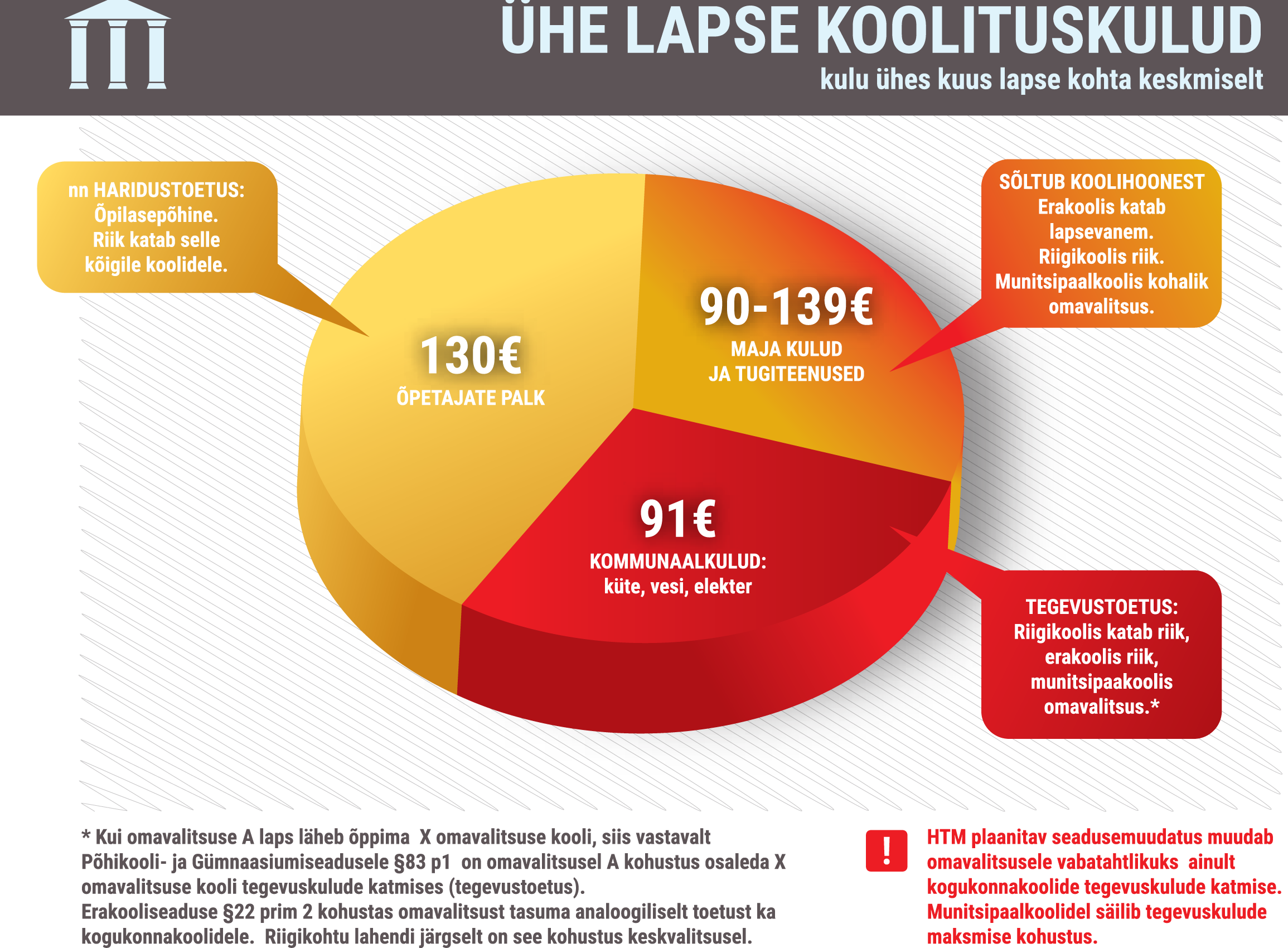 Juba praegu kulub erakoolis õppiva lapse peale maksumaksja raha tunduvalt vähem kui munitsipaal- või riigikoolis, sest koolihoone ja tugiteenuste kulud kaetakse erakoolis õppemaksust, munitsipaal- ja riigikoolis aga maksumaksja taskust. 2014. aasta andmetel maksab maksumaksjale ühe õpilase õppimine riigikoolis 360 eurot kuus, munitsipaalkoolis 314 eurot kuus ja erakoolis 221 eurot kuus.