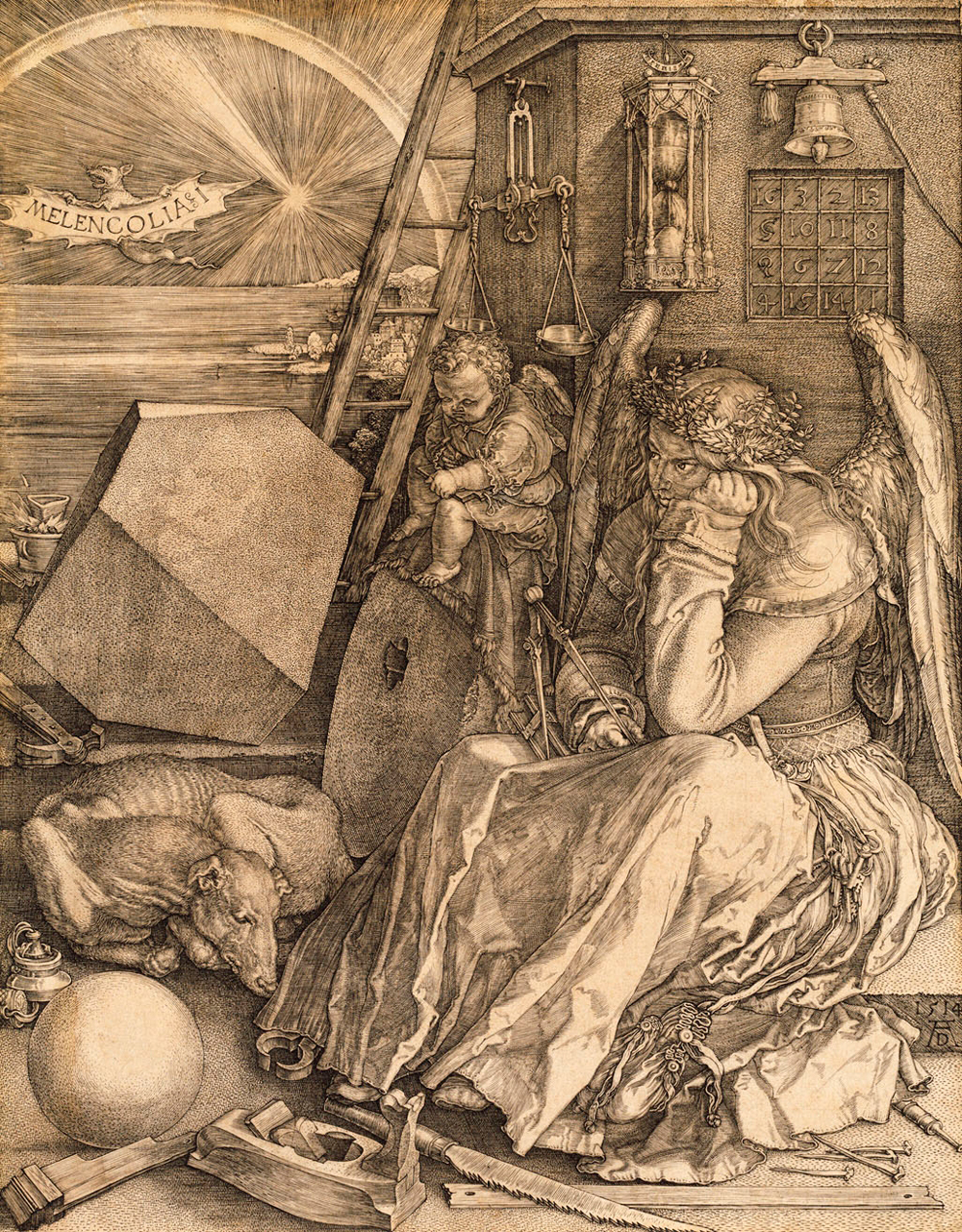 Viissada aastat tagasi valminud Albrecht Düreri vasegravüüri „Melencolia I” peetakse senimaani kunstniku üheks kõige mõistatuslikumaks meistriteoseks. Tõepoolest, võttes kas või nimetuse – kuigi ÕS pakub „melanhoolia” eestikeelseks vasteks kurvameelsust, on selle puhul (kr melas ‘must’ + chole ‘sapp’; melancholia seega ‘must sapp’) tegu pigem tõsise depressiooni ja musta masendusega, mis toob pähe isegi suitsiidimõtted (vt ka „Melanhoolia ei lase lahti”, ÕpL 31.08.2012).
