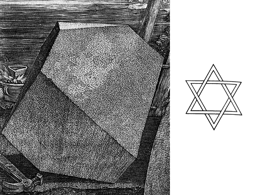 Ka püha geomeetriat on üksjagu, sh tetraeeder, kera ja ovaal. Risttahuka igast nurgast on tükk küljest ära lõigatud, nõnda et moodustub kaks vastastikku asetsevat kolmnurka ja neist omakorda heksagramm, tetraeedri külgedel tekivad viisnurgad, kokku kuus tükki. Töötlemata kivi tahumine on ülimalt sümboolne tegevus, seostub vaimu arendamisega, et mitte öelda – teadvuse peenhäälestusega.
