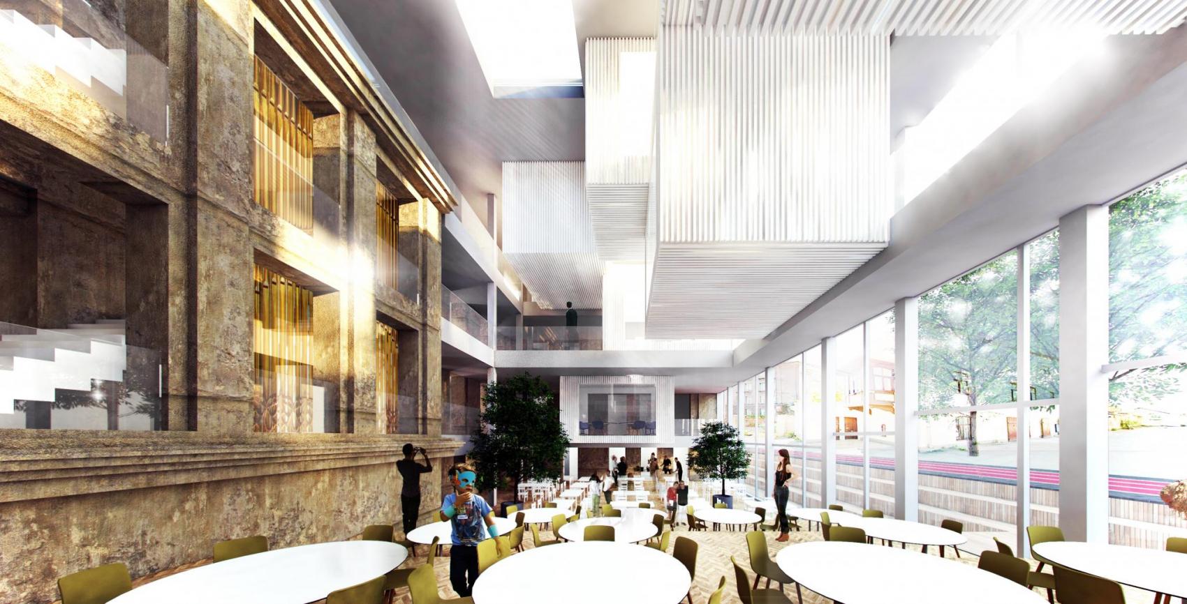 Pilt tulevase kooli aatriumist. Foto koolimaja projektist.