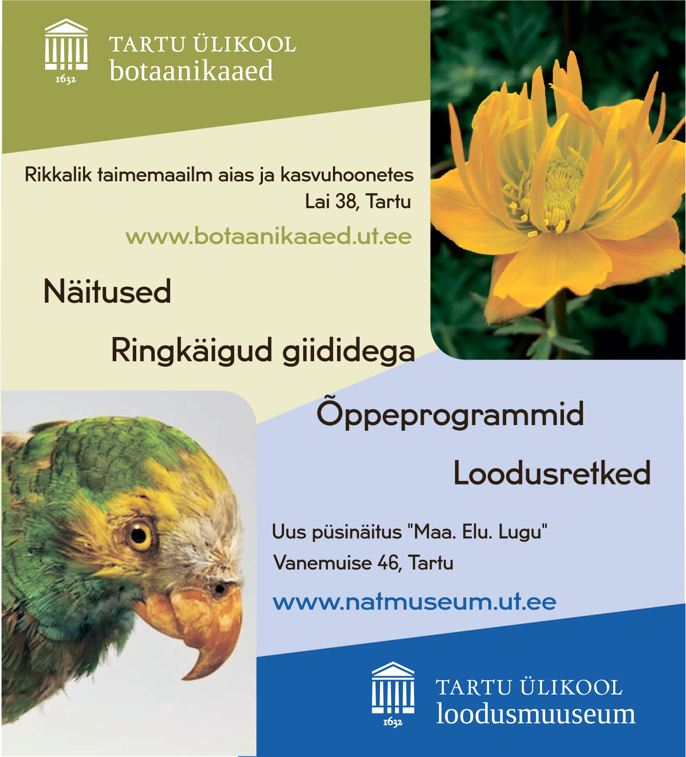 Rohkem infot TÜ loodusmuuseumi ja botaanikaaia õppeprogrammide ja muude tegevuste kohta www.natmuseum.ut.ee ja www.botaanikaaed.ut.ee.