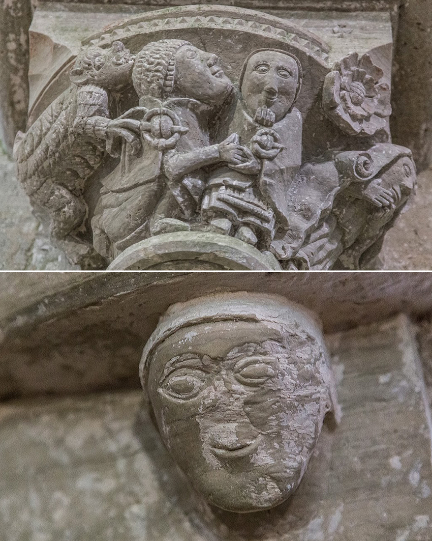 See situatsioon, et paha peletamiseks tuleb talle paljast istumiseotsa näidata ja jalge vahelt selja taha vaadata, on raiutud Karja kirikus nii kivisse kui ka maalitud pühimasse paika altari kohale. Jalgade vahelt vaadates saab lisaks põrgulise maapõhja kukutamisele ka eksitaja ja tuulispasaks käija ära tunda ning pisuhänna kinni panna.