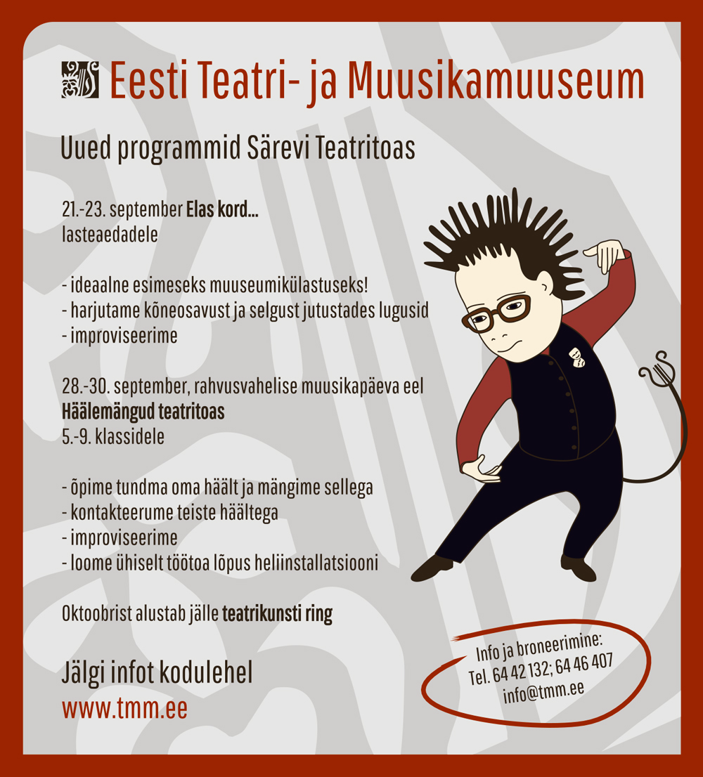 Särevi teatrituba on Tallinnas, kesklinna ja Kadrioru piiril (Tina 23–13) asuv väike kodumuuseum, mis oma eheda atmosfääri ja uue teatraalse ekspositsiooniga pakub nauditava ajarännaku nii lastele kui ka täiskasvanutele. Lavastuse väljatoomist toetab Eesti kultuurkapital. Pileti hind on 8 eurot. Lisainfo, piletite broneerimine ja grupitellimused info@tmm.ee ja 644 2132.