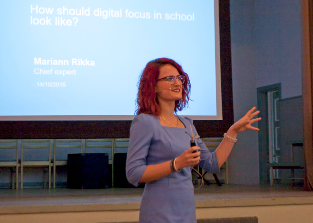 Eesti haridus- ja teadusministeeriumi peaekspert Mariann Rikka palus ettekannet alustades tõsta käsi kõigil, kes oma töös või igapäevaelus digiseadmeid kasutavad, ning enamik saalis viibinuist tõstis käe.