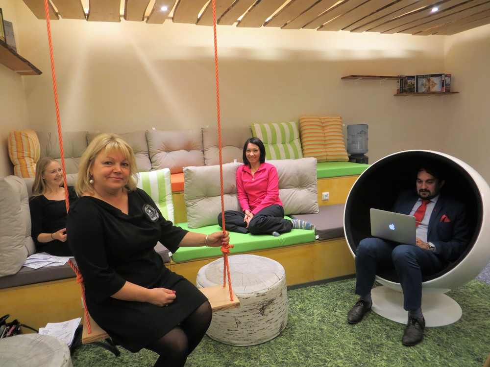 „Vau!” hõikasid Tartu erakooli (TERA) lapsed, nähes uut õpetajate tuba, kus igaüks saab valida meeltmööda lõõgastumisvahendi ja kiikuda kiigel, pikutada lavatsil, mõtiskleda eraldumismunas, panna puslet kokku, askeldada kööginurgas või kõndida niisama sokkis mööda pehmet vaipa.