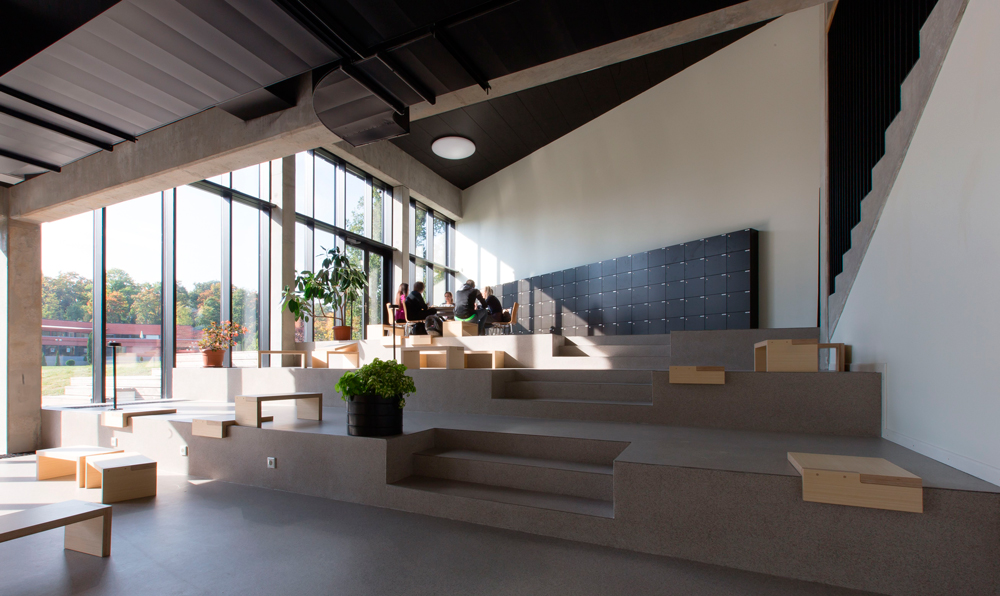 - Heas kooliruumis on ka sotsiaalne ruum, mis toetab nii suhtlemist õppetöö ajal kui ka sõprade ja koolipere läbikäimist. Näiteks on Tartu ülikooli Narva kolledži fuajee astmestik koolielu süda. Oluline on, et koolimajas saaks ka omaette olla. Viljandi riigigümnaasiumi esimesel korrusel on pikk avatud ruum ja selle tagumises otsas astmed, mille peal on kohviku tüüpi lauad. Õpilased on öelnud, et seal istudes on hea vaade teistele, aga samas ka omaette olemise tunne.
