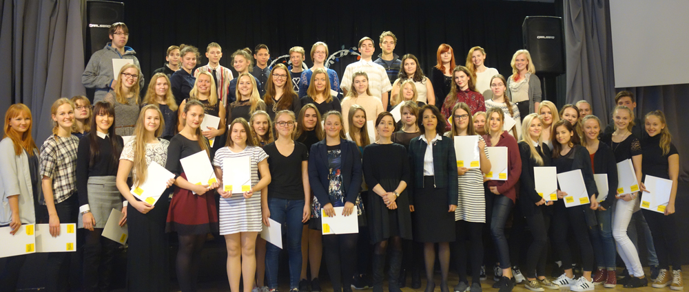 Tunnistused saanud õpilased ja suursaadik. Fotod: Descartesi kool