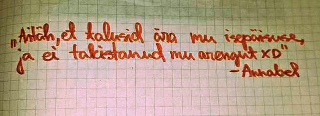 Õpilasi rääkima saada pole kerge. Mõnigi, kes vahetunnis jookseb karjudes ja pea laiali mööda koridori, on tunnis vait kui sukk. See-eest võib meeldida kirjutamine. Koguni nii palju, et üks kuuenda klassi poiss sattus suisa paanikasse, kui kuulis, et enam ei saa töövihikut täita. Nimelt täitis ta fanaatiliselt töövihikuid: kodus ja koolis ning isegi siis, kui ei pidanud.