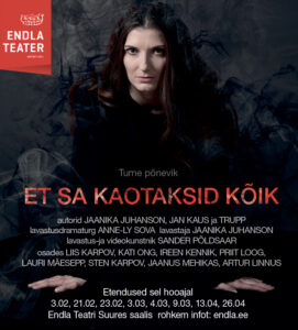 Üleloomulike sugemetega loo toob Pärnu teatri lavale vabakutseline näitleja, teatripedagoog ja näitleja Jaanika Juhanson, kellele see on esimene töö Endlas. Jan Kausi ja trupiga koostöös valminud teksti tõukepunktiks on Juhansoni soov katsetada teatrilaval põnevus- ja õuduslugudest pärit motiive: „See lavastus on minu jaoks täiesti teadlikult mängimine meelelahutusmaastikul. Ning seda võib mu meelest ikka teha, sõltumata ajast ja kohast. Täita publiku üks õhtu visuaalselt nauditava kaasaegse „muinasjutuga”. Seda enam, et ulme väga laias ning õudussugemetega põnevuslugu kitsamas plaanis pole Eesti teatris just tihtiesinev žanr. Selle kirjandusvaldkonna fännina köidab mind võimalus panna üleloomulikud juhtumused ja heas mõttes klišeed teatrilavale. Põneviku koore all aga tõstab lavastus esile ajatu teema – vihast ja süütundest lahtilaskmise, tahte ning oskuse edasi minna, kui ka ülekohus on ränk ja süüteod tumedad.” Lavastuses kõlab Feliks Küti ja trupi loodud originaalmuusika ning mängivad Liis Karpov, Kati Ong, Ireen Kennik, Priit Loog, Lauri Mäesepp, Sten Karpov ning külalistena Jaanus Mehikas ja Artur Linnus.