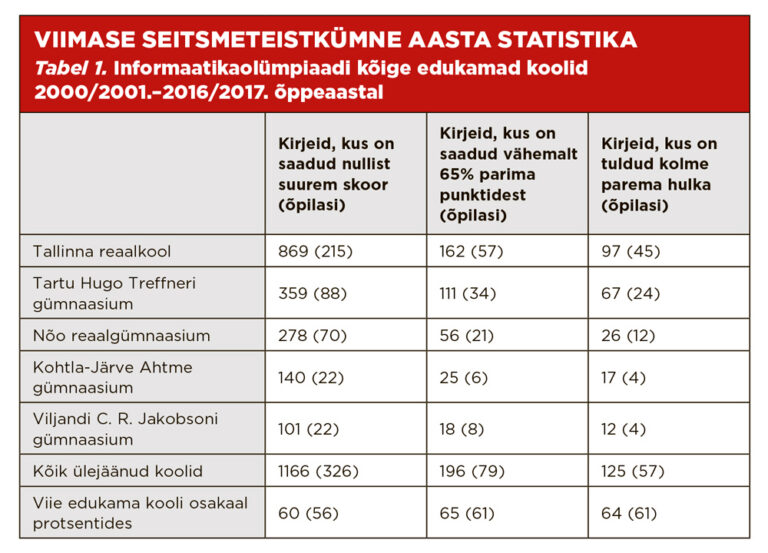 Informaatikaolümpiaadil edukate koolide ring on väike ja kahaneb.