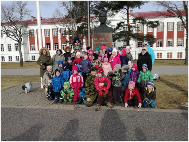 Eelmisel aastal tähistasime Eesti Vabariigi aastapäeva n-ö majasiseselt. Lisaks tavapärasele pidulikule aktusele organiseeris üks lapsevanem meie hoovile sõjaväetelgi, soomuki ja relvad. Lastel oli väga huvitav ja elamusrohke päev, mida meenutati veel pikka aega. Seetõttu kaasasime sel aastal vabariigi aastapäeva tähistamisse teisegi kaitseväes töötava lapsevanema, kes korraldas ühisekskursiooni Võru Kuperjanovi pataljoni. Sõit Tartust Võrru oli küllalt pikk, kuid lapsed pidasid vapralt vastu.