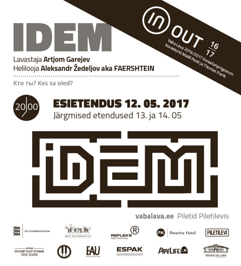 „IDEM” on audiovisuaalne performance, mis viib meid tagasi olemise lätte juurde, mil mugavuse tsoon oli piiratud lõkkega ning lõkkepiiri taga oli ehmatav teadmatus ja ohtlik võõras maailm, kus pidi suhteid klaarima. Sellest momendist hakkas tekkima tsivilisatsioon, mis vajas reegleid ja seadusi. Tänapäeval on neid aga nõnda palju, et inimesed on segaduses ega oska lahendust ja väljapääsu leida. Lavastus puudutab eri viisil identifikatsiooni, kooseksisteerimist ja adaptatsiooni ühiskonnas ning keerulisi küsimusi alates kultuurist ja rutiinist kuni selleni, kuidas võivad samad tingimused mõjutada tervet riiki või lausa kontinenti. Autorimuusikat esitab keelpilliorkester koos helilooja Aleksandr Žedeljoviga.