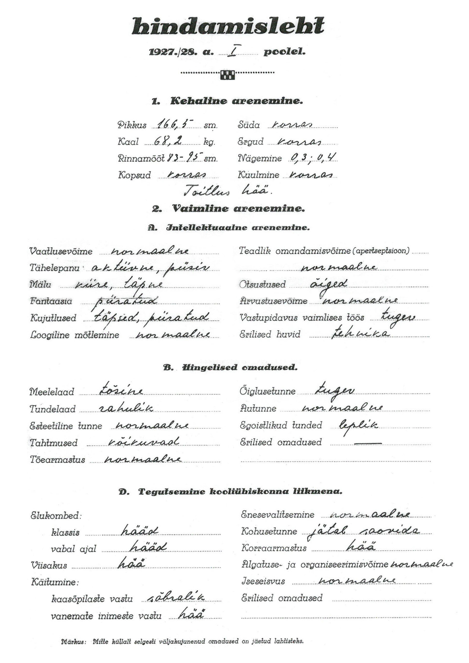 Uue süsteemi puhul pole vaja hakata jalgratast leiutama. „Maja renoveerimise käigus tuli päevavalgele kunagine õpilaste hindamisleht aastast 1927, mille saab kenasti eeskujuks võtta,” rääkis kooli õppejuht Annely Hindrikson.