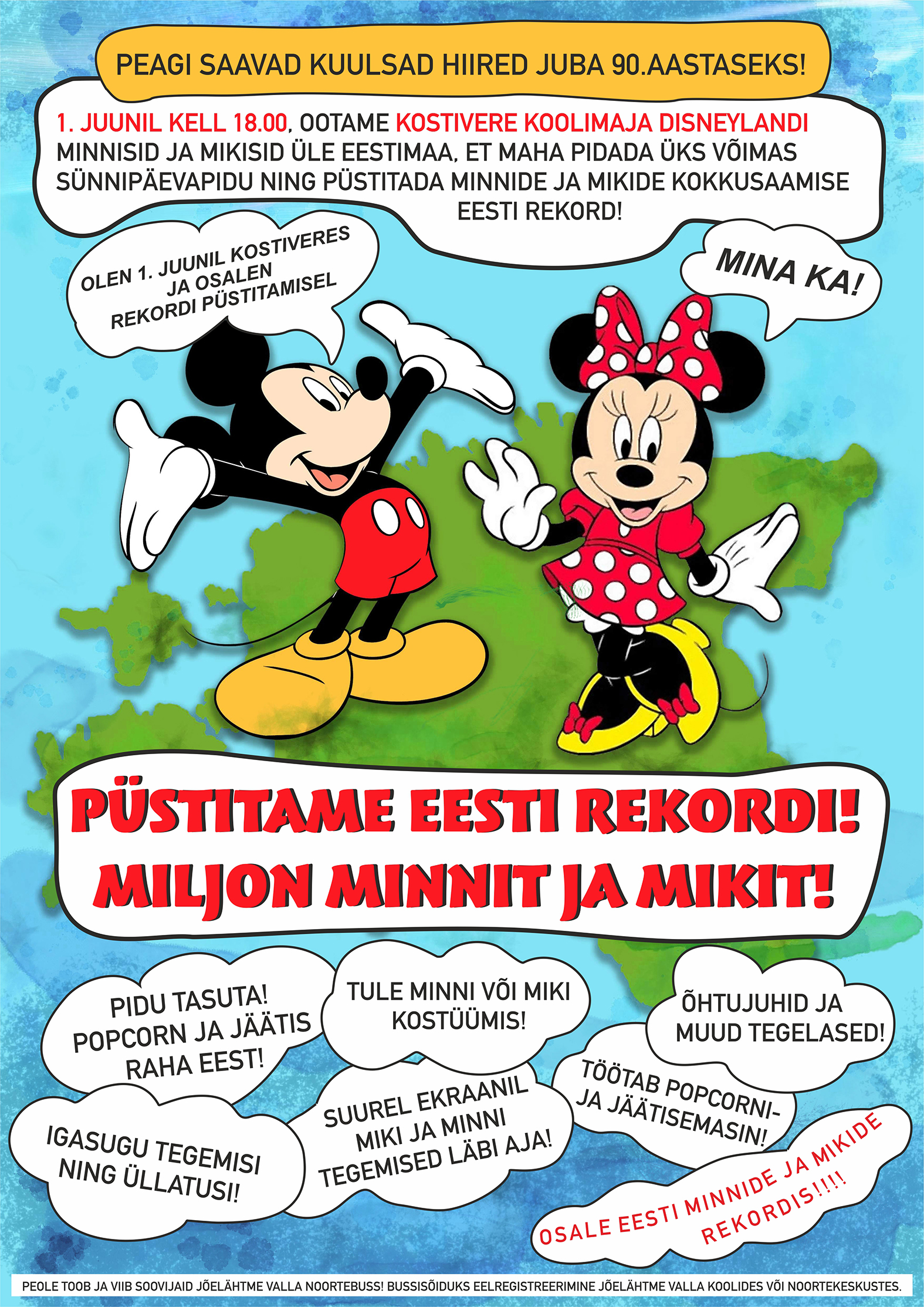 Üritus on tasuta ja kohale on oodatud kõik Mikiks või Minniks kehastunud, olenemata vanusest. Selleks päevaks on kooli saal kujundatud Disneylandiks, lisaks töötab popkorni- ja jäätisemasin ning avatud on kohvik. Suurel ekraanil näidatakse Miki ja Minni tegemisi läbi aja ning kavas on palju tegevust ja üllatusi kogu perele. Ürituse korraldajad on Kostivere aleviku ja Jõelähtme valla asutused.