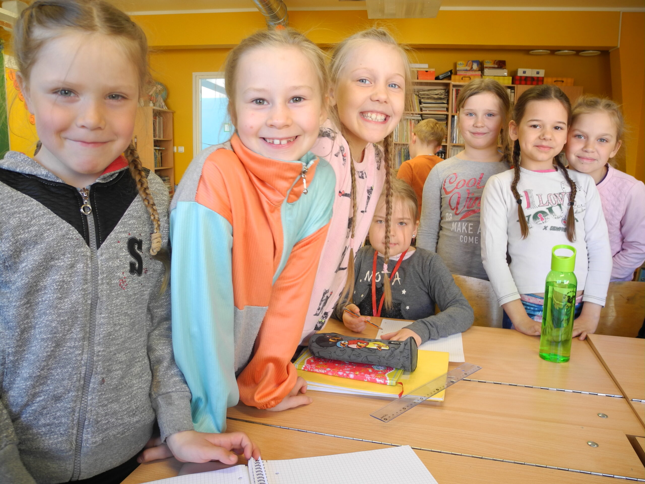 Lihula gümnaasiumi esimese klassi õpilased vaatavadki pingsalt kord külalisõpetaja, kord oma õpetaja poole. Siis lakke, pinginaabri suunas ja siis juba paberit, mille ülaservas ilutseb oma nimi ja number 1 esimese küsimuse tähistamiseks. „Kas ma võin selle kohta ka kirjutada, miks issi välismaal tööl käib?” küsib üks tüdruk, kulm kortsus. Heakskiitvat vastust kuuldes hakkab harilik pliiats paberile tähti vedama ja oluline küsimus, ükskõik mille kohta, saab suure naeratuse saatel kirja. Ja siis veel teine ja kolmaski.