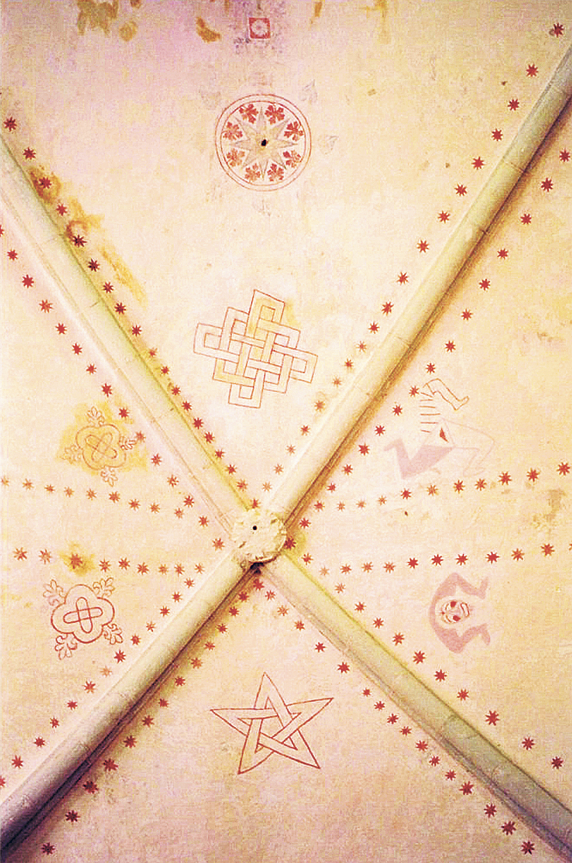 Paganliku viljakusjumalanna viieharulist tähte näeme ka kodukihelkonnakiriku, Karja kiriku laes, kus ta on maalitud kooriruumi võlvide alla sümboolsele taevalaotusele kõige kaugemal lääne pool. Väljapaistvam on seal kõrgel üleval loomulikult koidutäht Kristus (vrd „Mina olen Taaveti juur ja sugu, särav koidutäht”; Ilm 22:16). Kristuse kaheksakand on otsene paralleel Mesopotaamia koidutähele. Kaheksaharuline täht on ülestõusmise sümbol.