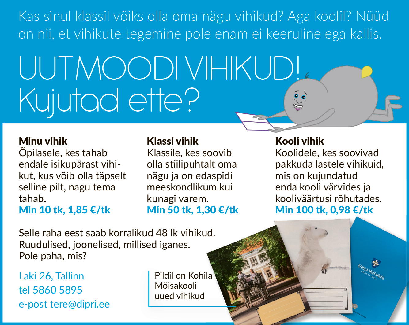 Alustada võib ka n-ö välisest individualiseerimisest. Näiteks Ruila kool on tellinud vihikuid, millel on nende koolimaja fotod. Sellised vihikud on ainult nende koolil ja mitte ühelgi teisel. Kohila mõisakool on tellinud Diprist oma kooli logoga vihikuid jne. Miina Härma gümnaasium on samuti selliste vihikute vastu huvi tundnud.