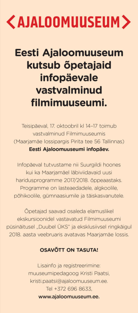 4. oktoobril avab Maarjamäe uuenenud ajalookompleksis uksed filmimuuseum.