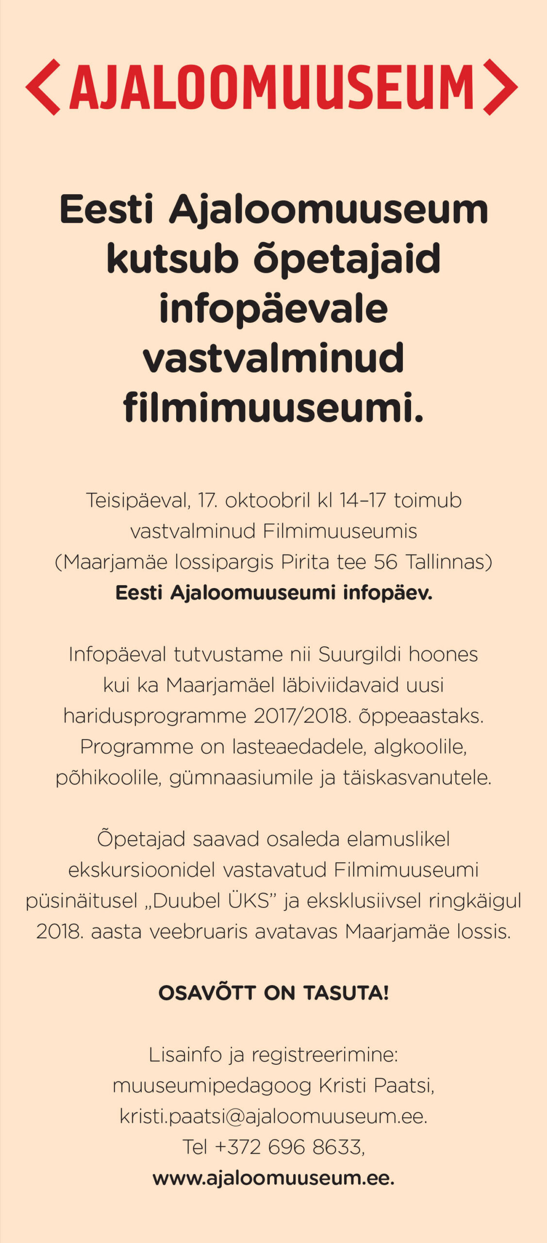 4. oktoobril avab Maarjamäe uuenenud ajalookompleksis uksed filmimuuseum.