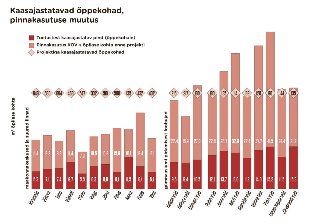 Pinnakasutus õpilase kohta kahaneb ligi 16 ruutmeetrilt kuuele.