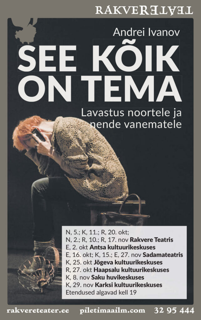 Jätkuvalt mängime lavastust „See kõik on tema”, mis aitab noortel mõista, kuidas näevad maailma nende vanemad, täiskasvanutele aga tuletab meelde, mis tunne oli olla noor. Lavastuses, mis sobilik alates 7. klassist, võtab üksikema ette sotsiaalse eksperimendi ja loob Facebooki konto, et jõuda lähemale oma võõraks jäänud pojale. Kui kaugele võib mänguga minna, ilma et see saaks saatuslikuks tegelikele suhetele?