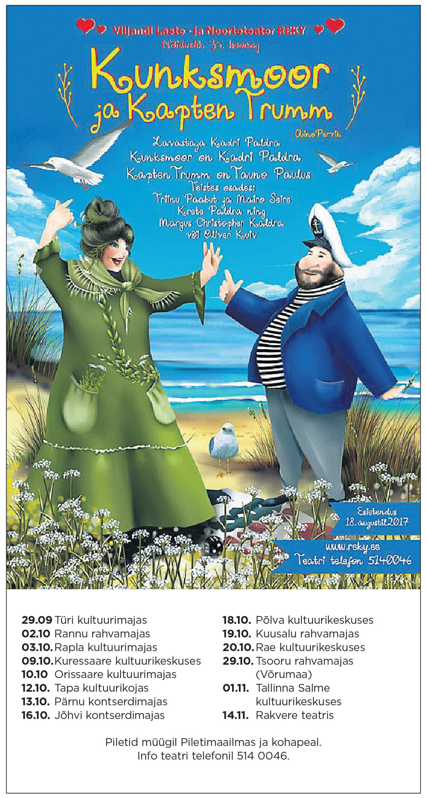 Selle hooaja avalooks valis teater Eesti lastekirjanduse tähtteose, Aino Perviku „Kunksmoori ja kapten Trummi”, millega tehakse suur kummardus teatri loojale Reet Laanele, kellele see lugu oli eriti südamelähedane. Kaasamõtlemist eeldav lavastus sobib eriti hästi vaatamiseks 6–12-aastastele, aga nostalgilist vaatamislusti ja äratundmisrõõmu pakub kindlasti ka täiskasvanutele.