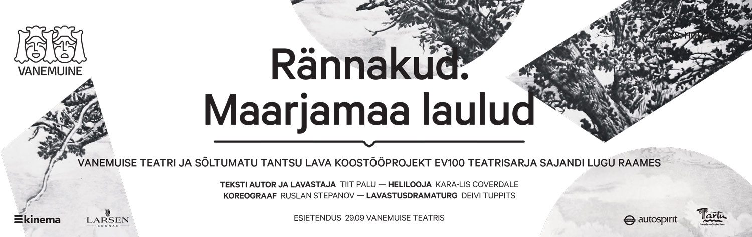 Draamažanri esimene esietendus on 29. septembril Vanemuise väikeses majas, kus vaatajate ette jõuab Vanemuise teatri ja Sõltumatu Tantsu Lava EV100 teatrisarjas „Sajandi lugu” sündinud koostööprojekt „Rännakud. Maarjamaa laulud”. Keele ilu, võlu ja valu kujutava lavastuse meeskonna tuumiku moodustavad Tiit Palu, Ruslan Stepanov ja Kara-Lis Coverdale.