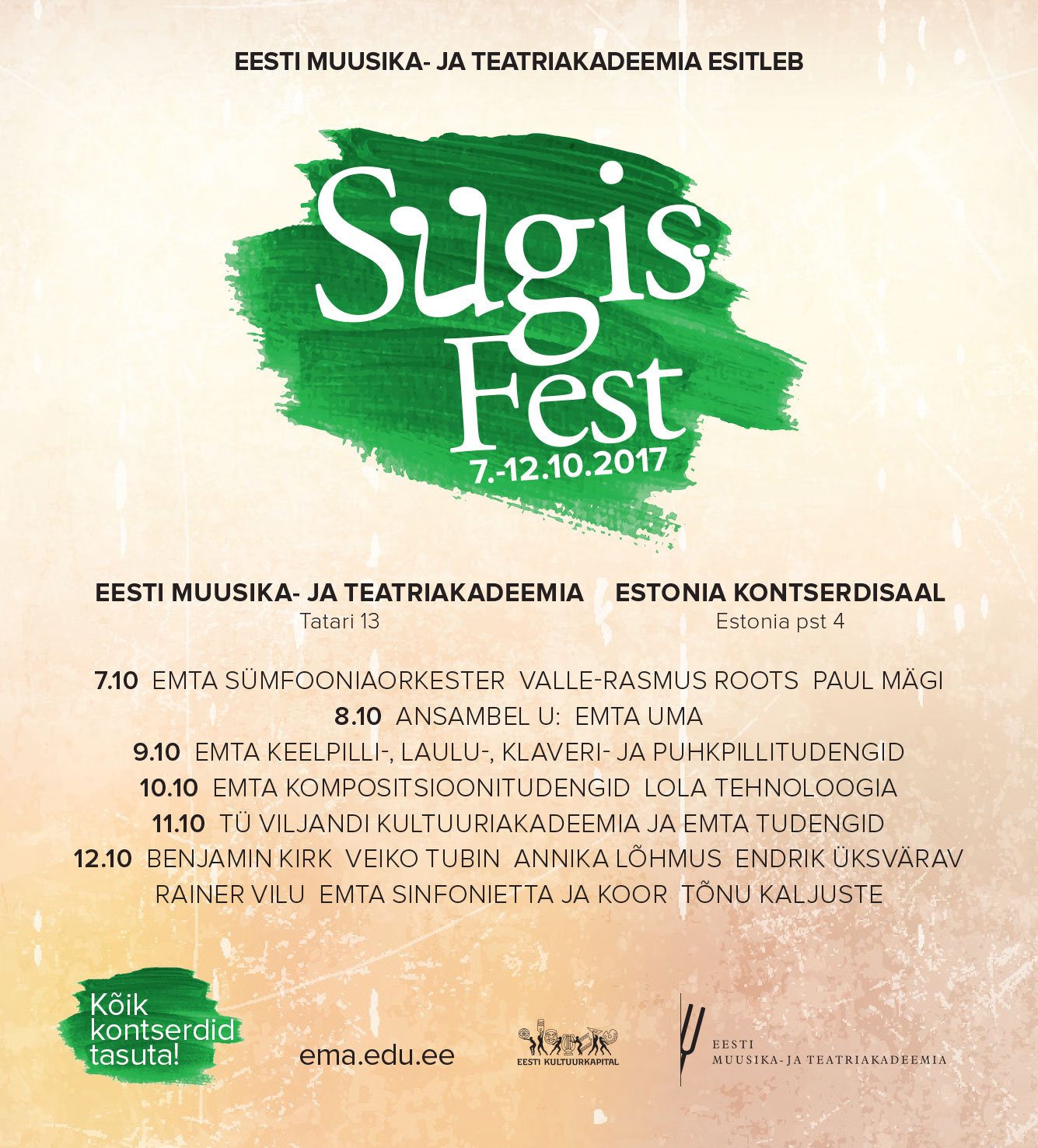 EMTA annab juba 18. korda oma panuse, et muuta värviline sügis veelgi põnevamaks – kõikidel muusikahuvilistel avaneb võimalus seada sammud nii Estonia kontserdisaali kui ka EMTA saalide poole, et saada osa muusikamaailma värsketest tuultest. On ju SügisFesti märksõnad piireületav koostöö ning värsked helid.