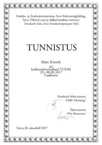 Sel aastal ma koolis ei tööta, kokkuvõtte tegemise pisik on aga sisse jäänud. Kui konkurss välja kuulutati, tekkis spontaanne idee proovida, kuidas ma ise selle ülesandega toime tulen. Et ei oleks nii, et kes oskab, see teeb, ja kes teha ei oska, see õpetab. Meisterdasin kokkuvõtet terve reede, muidugi vaheaegadega, ja päris nautisin seda tegevust. Et tööle korralik punkt panna, saatsin kokkuvõtte ka ära – võistlusmoment lisab ju alati asjale vürtsi. Pealegi teadsin, et tööde hindamine on anonüümne ja tõenäoliselt ei saa keegi mu osalemisest teada. Päris nii aga ei läinud. Oktoobri lõpupoole sain emakeele seltsi sekretärilt kirja teatega, et olen „Tuuma” konkursi võitnud. No nüüd võin edaspidi vähemalt julgelt kokkuvõtte tegemist õpetada, oli mu esmane reaktsioon selle ootamatu uudise peale.