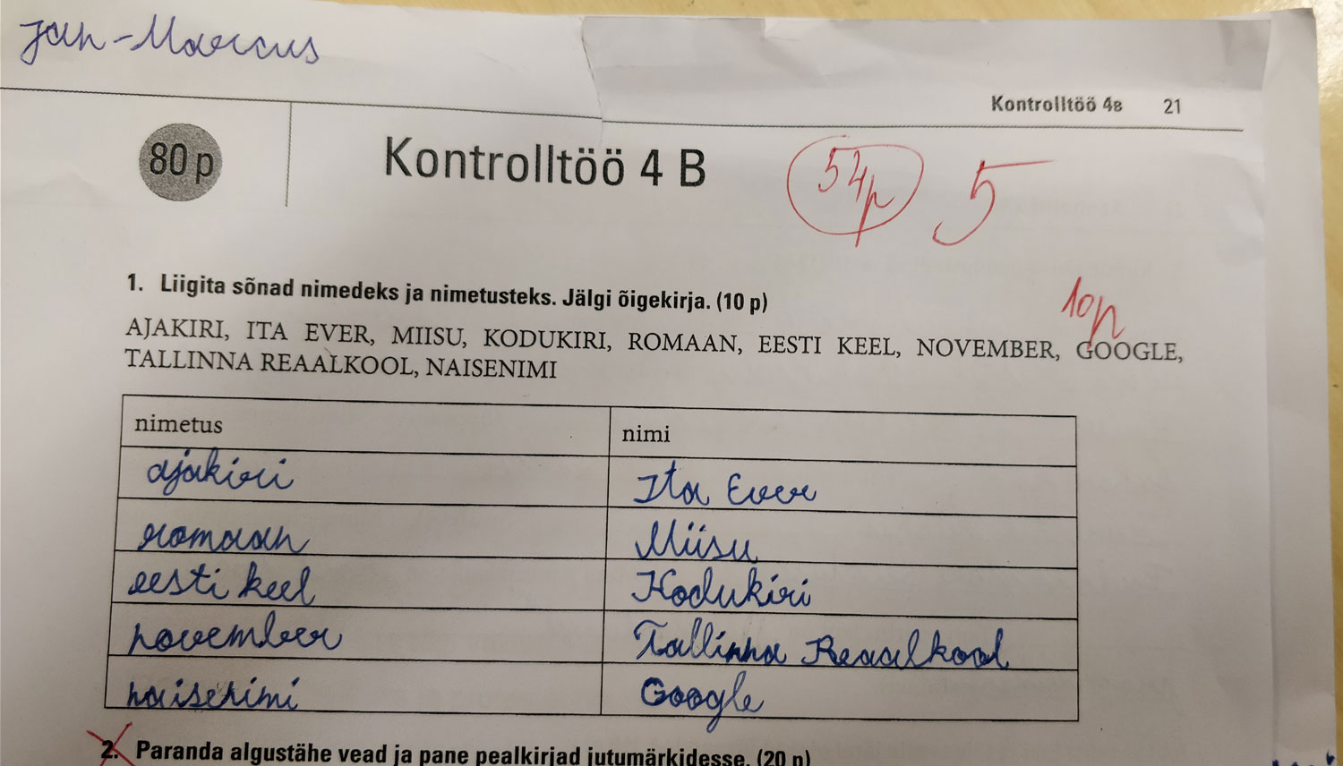 Kuna võistlusmoment õpilastele meeldib, tegin ka tabeli, et oleks näha, kellel kõige paremini läheb. Praegu on üks poiss üksinda viis viit saanud. Kõik peavad pingutama – rohkem viisi võib alati olla, vähem ei tohi.”