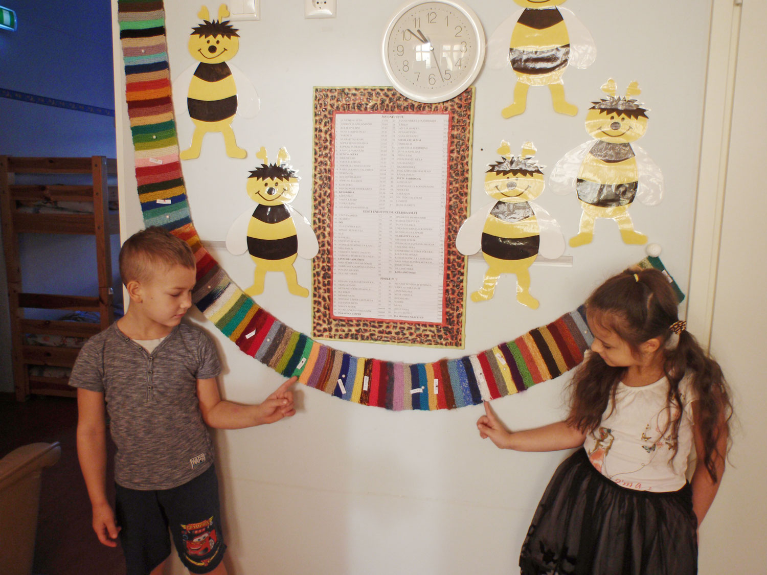 Eesti õppekeelega Mesimummi rühma 16 lapsest on enamik vene peredest. Õpetaja usub, et muinasjutte kuulates saavad nad iga päevaga paremini selgeks ka eesti keele. Seda, et Eesti Vabariigil on 24. veebruaril 100. sünnipäev, teavad kõik lapsed ja selle tähistamiseks on plaanis teha näitus. Merle Korsten räägib, et sügisel, kui õpiti aadressi teemat, käidi tihti Kohtla-Järve linnas jalutamas. „Käisime just nendel tänavatel, kus lapsed elavad, mõni pere kutsus meid sisse ka, nii et meil oli väga põnev sügis. Siis tuligi lastel mõte, et igaüks meisterdab kodus koos vanematega pappkastist või -karbist oma kodumaja ja teeme nendest lasteaias näituse. Muidugi toimub pidulik aktus, kus esinevad kõigi rühmade lapsed. Pärast sööme koos torti ja läheme õue ning laseme lendu sinimustvalged õhupallid.”