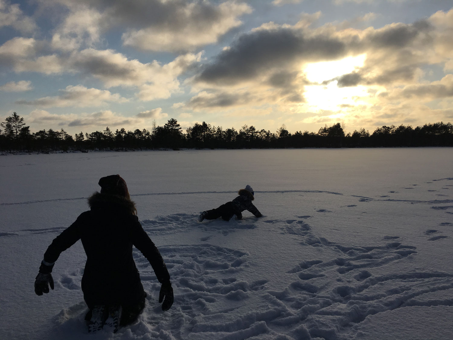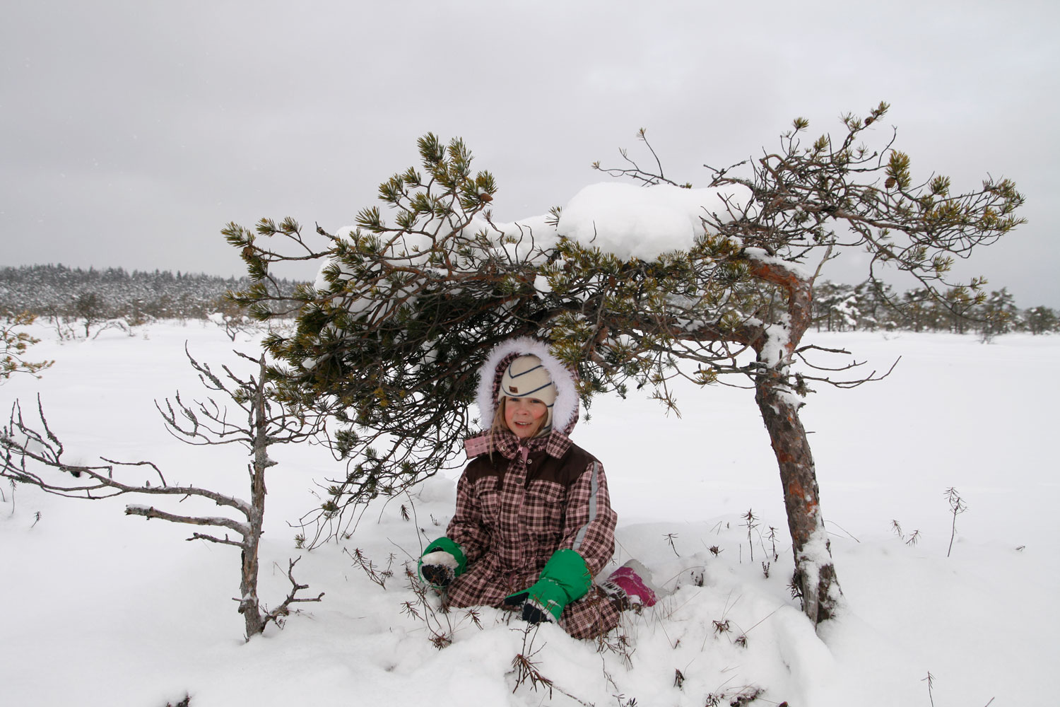 Kakerdaja rabas pisikeste rabamändide vahel kükitab Lola. Jääkaanega kaetud Kõnnu järvel hullab Adele koos vanema vennaga. Need on kolm paljudest Eesti 100. sünnipäevale pühendatud fotonäituse fotodest Kohila Sipsiku lasteaias.