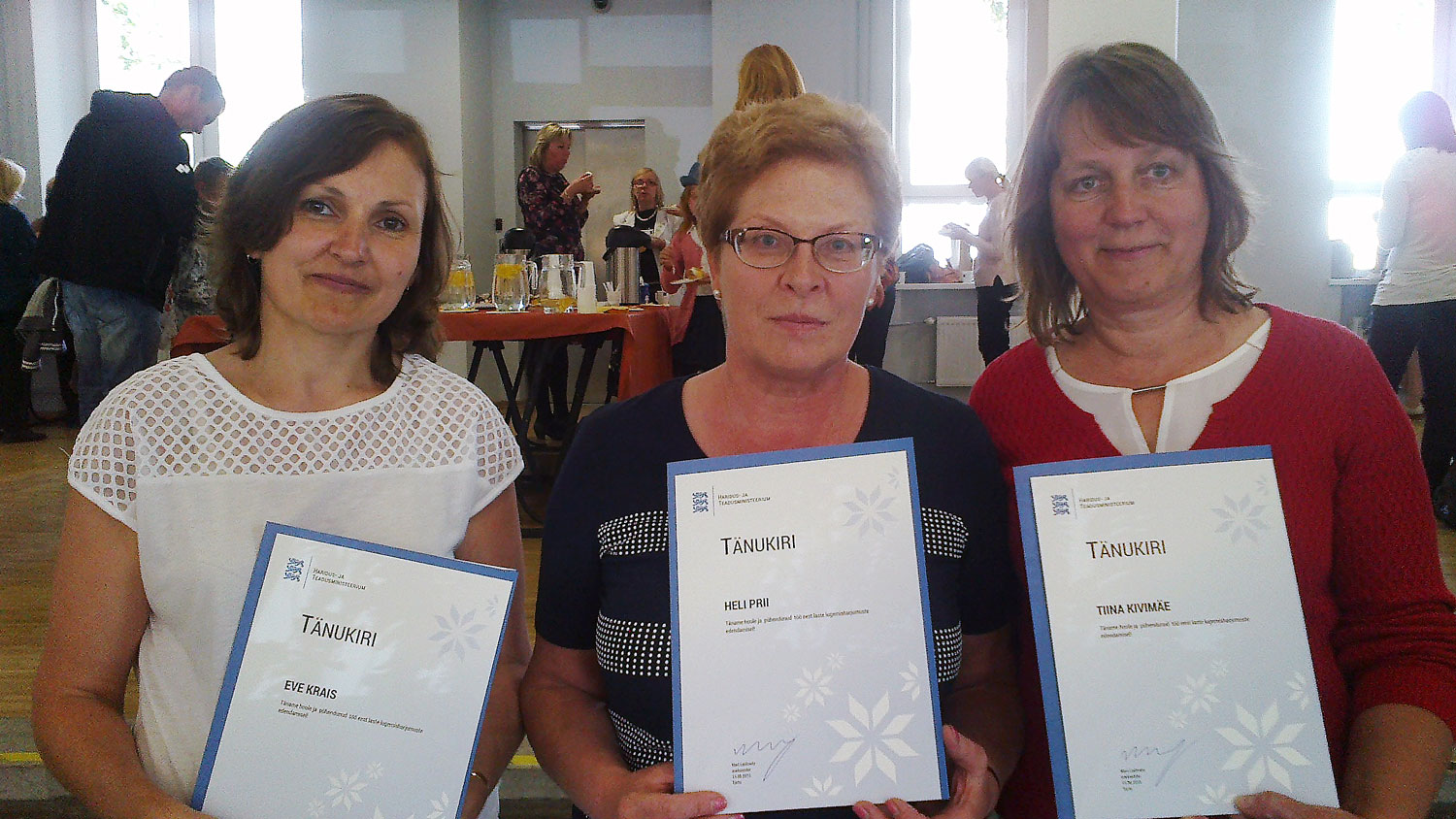 Tiina Kivimäe: „Eve kontrollib üle, kas kõik nimed on õigesti kirjutatud, kas kõik tänu- ja kiituskirjad on olemas. See on väga tähtis ülesanne. Kui oleme käinud mujal oma ettevõtmisest rääkimas, on ka tutvustus jäänud Eve teha. Tänupäeva eeskava kokku panna on minu ülesanne; eeltöö, registreerimine, teavitus samuti.”