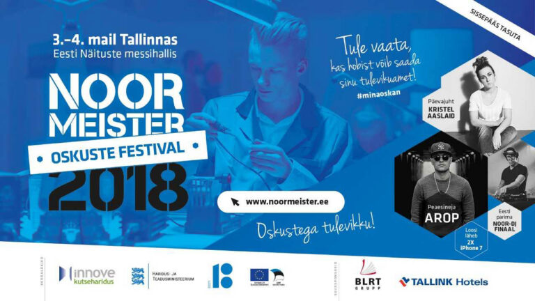 Aitame kaasa, et oleks veelgi rohkem rahulolevaid noori, kellest on ka ühiskonnale kasu, ning kutsume kõiki 3. ja 4. mail oskuste festivalile „Noor meister 2018”. Üritus keskendub noortele ning nende oskustele ja hobidele, millest võib tulevikus saada elukutse või hüppelaud iseseisvasse ellu. Oodatud on kõik koolinoored koos õpetajatega, et täiendada oma teadmisi, panna käed külge töötubades ning vaadata ringi võimaluste maailmas, mida pakuvad juba omandatud oskused.