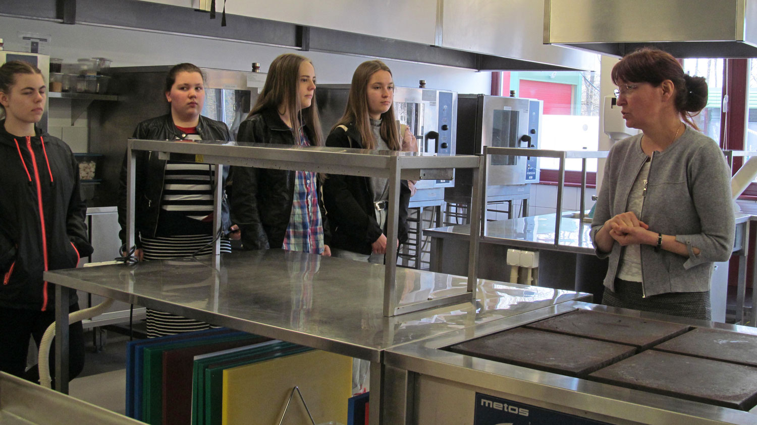 Tulevased kokad said näha kutsekooli õppekööki, kus neile tutvustas eriala õpetaja Marina Madisson. Fotod: Annika Poldre